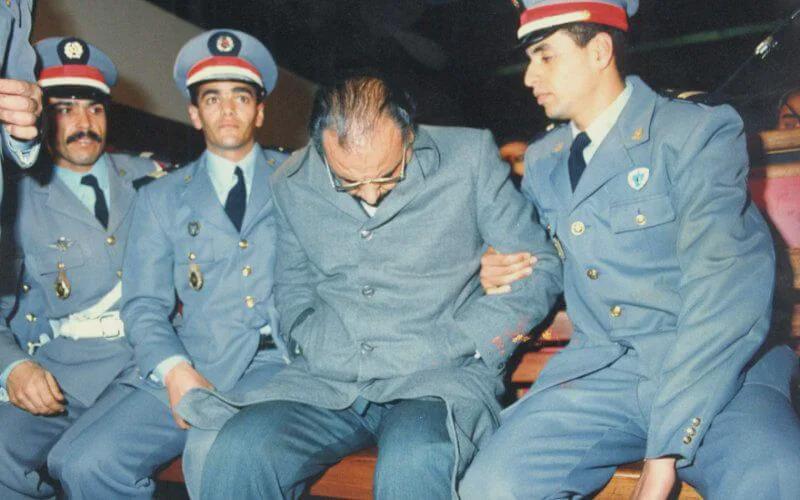 Moroccan police commissioner Mustapha Tabet hangs his head at his trial. With the protection of other cops, Tabet kidnapped, assaulted, and raped at least 518 women and girls, albeit he might’ve had 1,200+ victims. It remains the worst police corruption scandal in the country, 1993 .