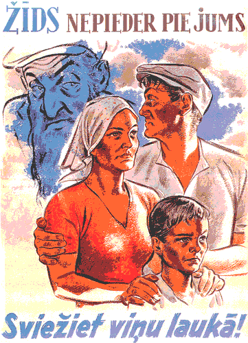 ‘The Jew is not your relative. Throw him out into the street!’ Latvian poster, 1941. Gallery ‘The Jew is not your relative. Throw him out into the street!’ Latvian poster, 1941. Ads ‘The Jew is not your relative. Throw him out into the street!’ Latvian poster, 1941. By action-reaction|2025-10-11T07:00:29-05:00October 11, 2025|Ads|0 Comments Read More