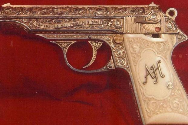 Adolf Hitler’s Walther PP (.32 ACP), a 50th-birthday gift from the Walther family in 1939, features gold inlays and ivory grips. It sold to a private collector in 1987 for $114,000 and is now estimated to be worth millions. GalleryAdolf Hitler’s Walther PP (.32 ACP), a 50th-birthday gift from the Walther family in 1939, features gold inlays and ivory grips. It sold to a private collector in 1987 for $114,000 and is now estimated to be worth millions.