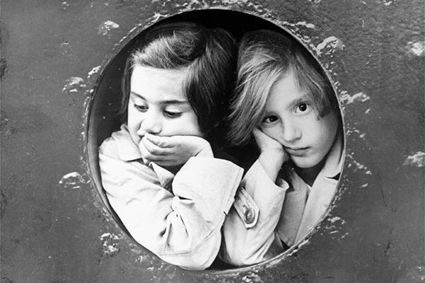 Twin sisters watch out a porthole of the SS St. Louis Jewish refugee ship, not permitted to disembark in Cuba or the U.S. after escaping Nazi Germany. Havana, Cuba. May 1939.