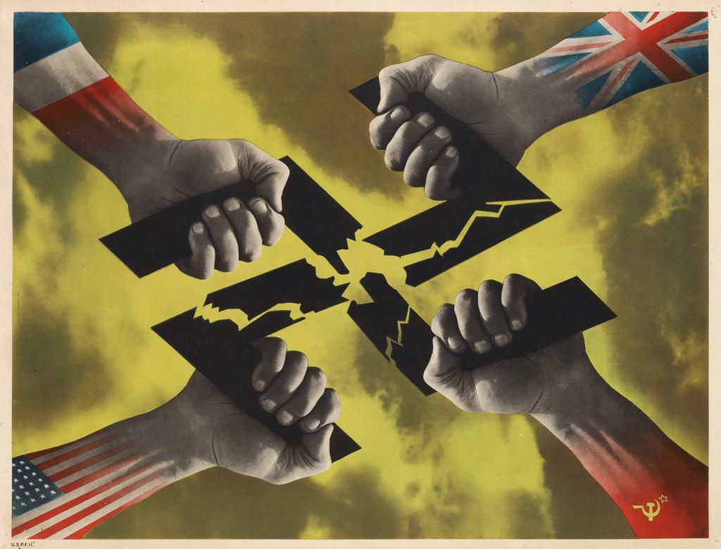 ALLIED HANDS BREAKING SWASTIKA- 1944